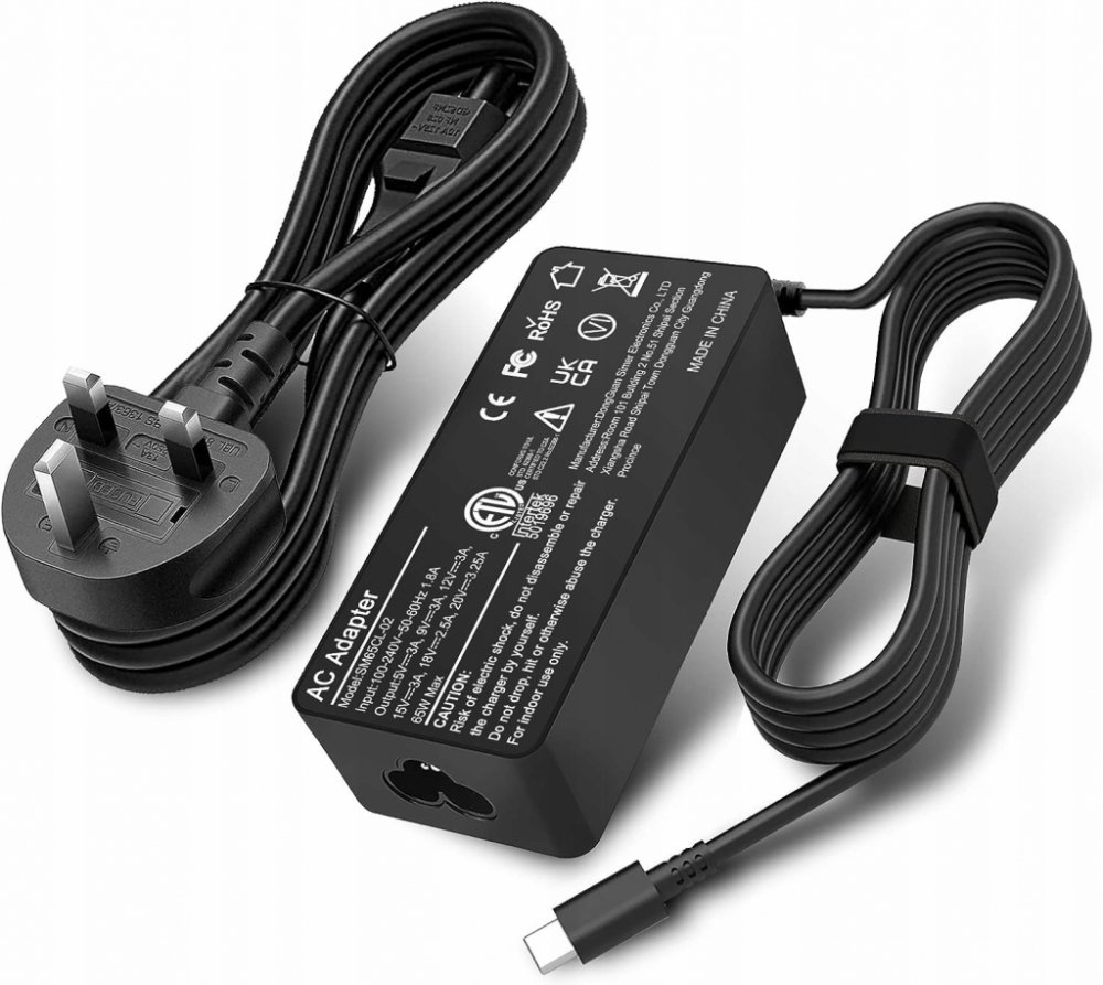 Síťový zdroj pro notebooky. Součásti balení je i síťová šňůra do zásuvky. Návod v CZ je součástí balení!