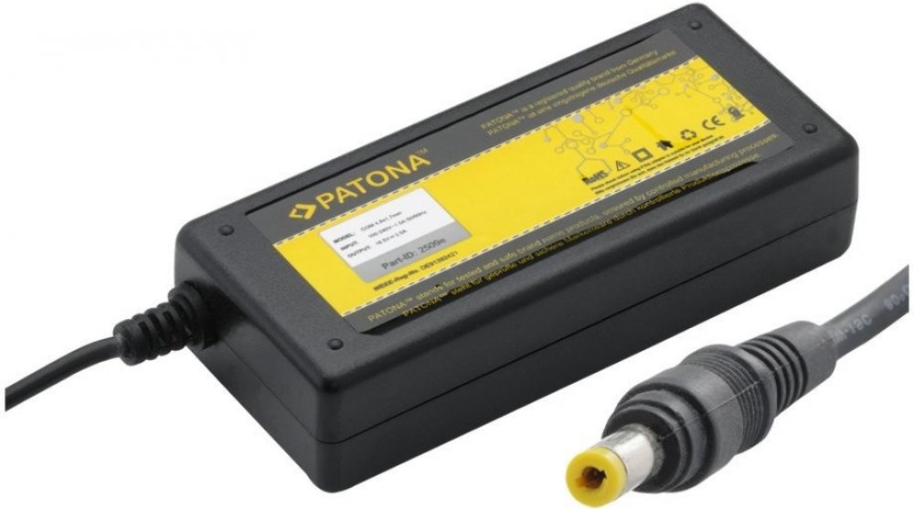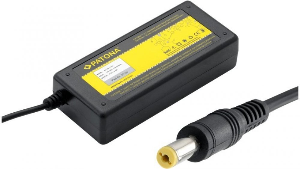 Napájecí adaptér pro vybrané modely notebooků Acer, Asus, Dell, FUJITSU-SIEMENS, GATEWAY, MAXDATA, TOSHIBA a MSI s napájecím konektorem 5,5x2,5mm, výstupní napětí 19V při maximálním proudu 3.42A a příkonu notebooku 65W. Nabíječka Patona pro vybrané modely notebooků Acer, Asus, Dell, FUJITSU-SIEMENS, GATEWAY, MAXDATA, TOSHIBA a MSI s napájecím konektorem 5,5x2,5mm. Nabíječka poskytuje výstupní napě...