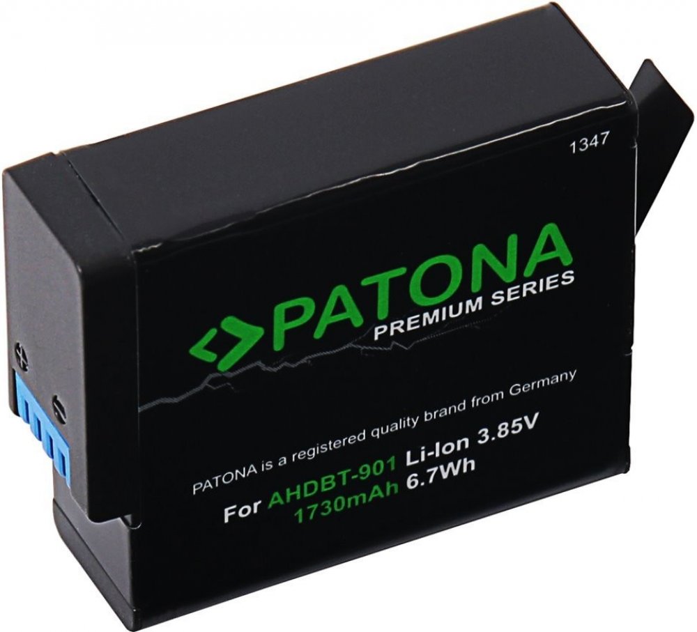 PATONA baterie pro GoPro Hero 9/10/11/12 1730 mAh; Kompatibilní baterie série Premium pro videokamery GoPro. Baterie se vyznačují vysokou kvalitou, mají integrovanou ochranu proti přetížení a přebití. ZÁKLADNÍ SPECIFIKACE; Kapacita: 1730 mAh (6,7 Wh);...