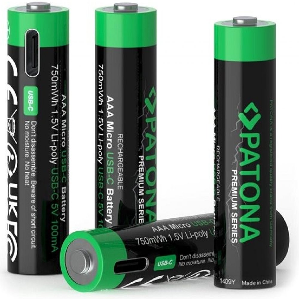PATONA nabíjecí baterie AAA/LR03 Li-Pol 500mAh 1,5V s USB-C nabíjením, 4ks v balení