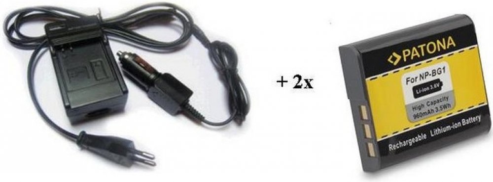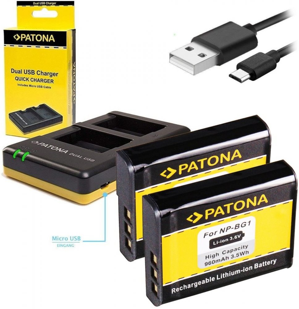 Nabíječka, pro fotoaparát, 2x baterie, 960mAh PATONA Nabíječka + 2 x baterie komaptibilní s Sony NP-BG1