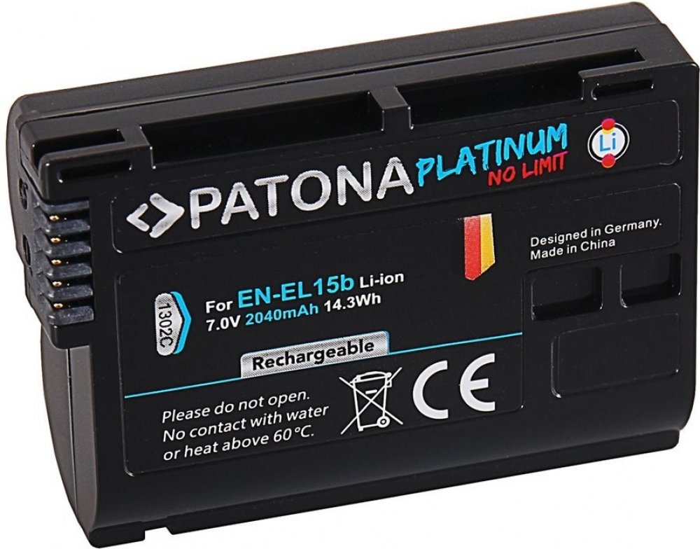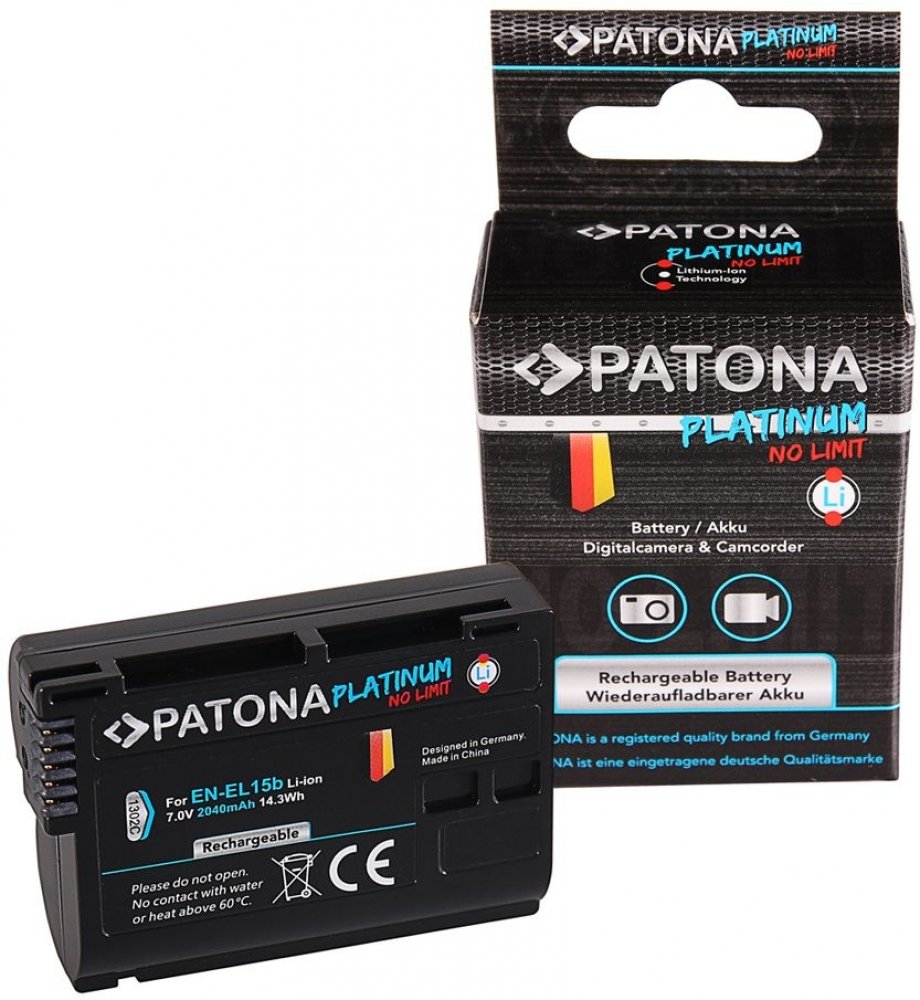 PATONA PLATINUM pro Nikon EN-EL15B 2040 mAh; Kvalitní akumulátor pro váš digitální fotoaparát Nikon. Upozornění: baterie není kompatibilní s fotoaparátem Nikon ZF. ZÁKLADNÍ SPECIFIKACE; Kapacita: 2040 mAh; Technologie baterie: lithium-Iontová; Nahrazu...