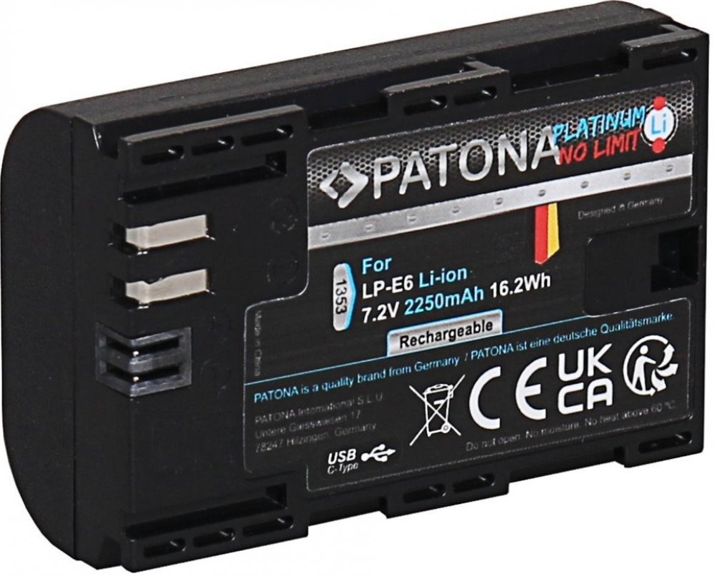 Klíčové vlastnosti baterie pro fotoaparát PATONA PLATINUM kompatibilní s Canon LP-E6NH Alternativní baterie PATONA spolehlivě zajistí náhradu za původní akumulátor 7,2V akumulátor se může pochlubit kapacitou 2,25 Ah S náhradní porcí energie se vyhnete situaci, že nezachytíte požadovanou scénu kvůli slabé baterii Nabízená baterie pro fotoaparát je spolehlivým řešením Tvoří ji Li-Ion článek Jak udrž...