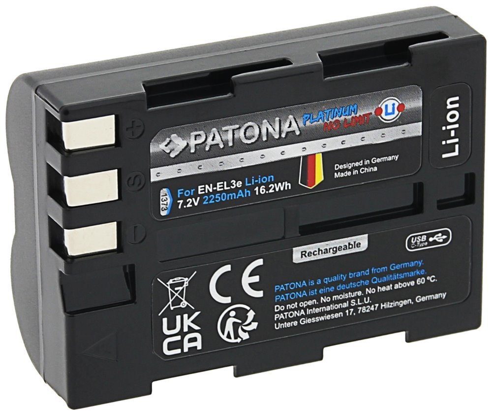 Zásadní přednosti baterie pro fotoaparát PATONA baterie pro Nikon EN-EL3E 2250mAh Li-Ion Platinum USB-C nabíjení Alternativní baterie PATONA spolehlivě zastoupí originální akumulátor 7,2V akumulátor je vybaven kapacitou 2,25 Ah Díky přidané porci energie se vyhnete situaci, že nezachytíte požadovanou scénu kvůli slabé baterii Nabízená baterie pro fotoaparát je spolehlivým řešením Tvoří ji Li-Ion článek Baterie PATONA je připravena na 1000 nabíjecích cyklů Baterie pro fotoaparát si zaslouží péči Chcete-li udržet baterii funkční co nejdelší dobu, je potřeba jí věnovat správnou péči. Baterii pro fotoaparát PATONA není dobré vybíjet do prázdna, neboť by mohla ztrácet kapacitu. Rovněž ji není vhodné vystavovat přímému slunečnímu záření, teplotám nad 60 °C, a v zimě ani mrazu. Akumulátor chraňte také před pády, vlhkostí a před chemickými prostředky. Nikon Model: