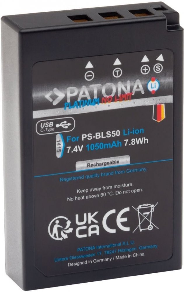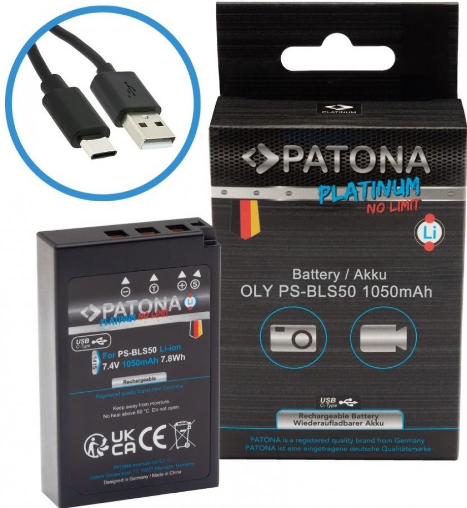 Aku Olympus BLS-5/BLS5 1050mAh Li-Ion Platinum USB-C nabíjení 7,4V/7,8Wh