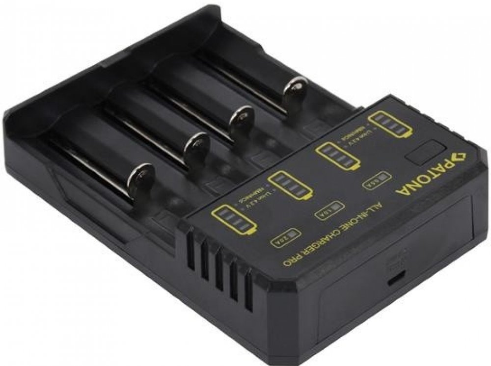 Univerzální nabíječka se čtyřmi sloty umožňuje nabíjet širokou škálu baterií včetně AA, AAA, CR123A či 18650. Vestavěný mikroprocesor chrání baterie před přehřátím nebo přebitím. Napájení je realizováno skrze micro USB konektor.