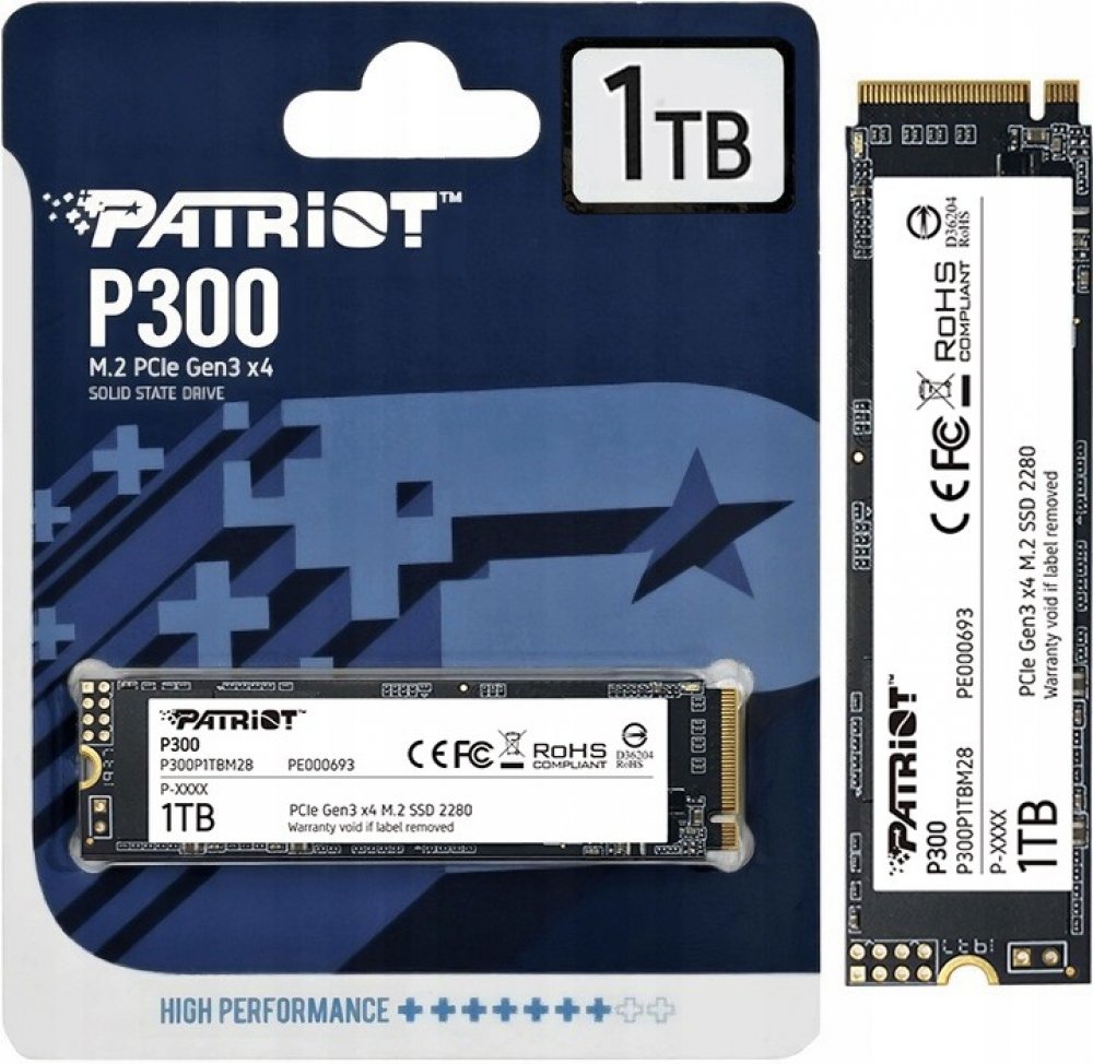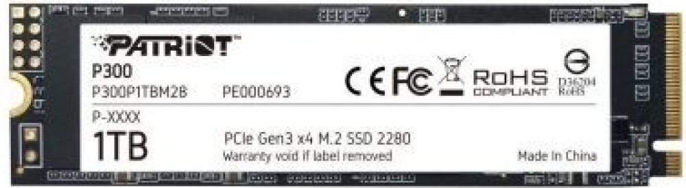 Patriot Memory 1000 GB M.2 PCIe 3.0 x4 NVMe 3D TLC pro OS a aplikace pro vysoký výkon bez otáček ot./min se střední výdrží Patriot P300 32 MB 9.0 g M.2 2280 černé 2100 MB/s 1650 MB/s 290000 IOPS 260000 IOPS 320.0 TB 2000000 hodiny