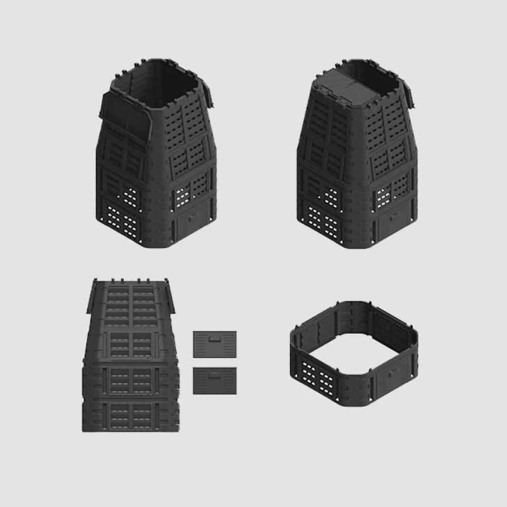Celoroční ECO kompostér - Zajišťuje možnost vlastní přípravy hodnotného hnojiva. - Použití kompostéru šetří hnojiva a náklady na likvidaci recyklovatelného odpadu. - Speciální tvar zajišťuje rovnoměrnou cirkulaci vzduchu, umožnuje zavlažování kompostu a urychluje proces rozkladu. - Jednoduchý poklop, který chrání obsah před škůdci a silným větrem. - Pohodlná rukojet poklupu. - Odnímatelně dolní dv...