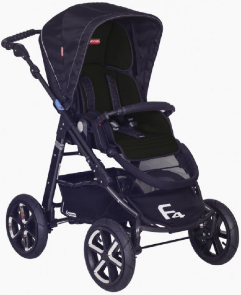 Celohliníkový skládací 4-kolový ALUX podvozek, pevná kola 12" - nafukovací, nastavitelná tuhost odpružení, standardní nožní brzdový systém, úhlově nastavitelné vodítko, "clip-A-go" systém pro upevnění sedačky, velký košík, reflexní bezpečnostní prvky