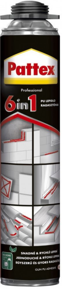 Pattex 6v1 je jednosložkové univerzální trubičkové PU lepidlo vhodné pro různé druhy lepení. Vyznačuje se vynikající přilnavostí k různým povrchům v kombinaci se snadnou schopností vyplnění. Díky tomu je obzvlášť vhodné pro nerovné povrchy. Použití PU lepidla pomáhá předcházet vzniku tepelných mostů. Má vynikající přilnavost na většinu stavebních materiálů, jako je dřevo, beton, kámen, kov atp. Pl...