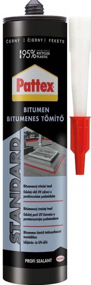 Pattex Bitumenový střešní tmel je plasticko-elastická těsnící hmota na bázi polymerů a bitumenu, která obsahuje rozpouštědla. Tento produkt je speciálně navržen pro lepení a opravy různých povrchů, včetně asfaltových lepenek, cihel, betonu, olova, zinku, dlaždic, izolačních panelů a některých plastů. Díky své vynikající přilnavosti je ideální pro opravy střech, drenážních prvků, komínů a dalších konstrukcí, kde je vyžadována 100% voděodolnost. Produkt je vhodný i pro nouzové opravy během deště a na vlhkých plochách.