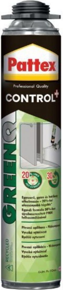 PATTEX GreenQ je nízkoexpanzní pistolová PU pěna vyrobena z recyklovaných materiálů.