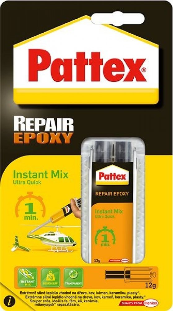 Mimořádně rychle vytvrzující dvousložkové lepidlo PATTEX Repair Epoxy Ultra Quick bez těkavých rozpouštědel na permanentní opravy, lepení a fixování. Díky statickému směšovači je smíchání obou složek precizní a aplikace velmi snadná a rychlá. Lepí, opravuje a fixuje téměř všechny materiály. Nedoporučuje se k lepení PP, PE a PTFE (Teflon®). Klíčové vlastnosti dvousložkového epoxidového lepidla PATT...