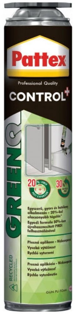 Pattex GreenQ je ekologická šedo-zelená nízkoexpanzní polyuretanová pěna s extrémně vysokou výtěžností až 52 litrů na dózu, což zajišťuje ekonomickou výhodnost oproti konkurenčním produktům. Tato pěna obsahuje 30 % recyklovaného PMDI a její obal je vyroben z recyklovatelných materiálů – víčko z 98 % recyklovaného plastu a dóza z 25 % recyklovaného kovu. Díky těmto vlastnostem pomáhá produkt snižovat uhlíkovou stopu…