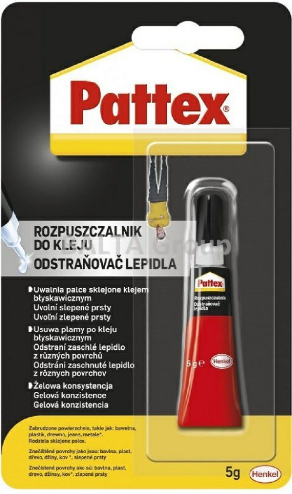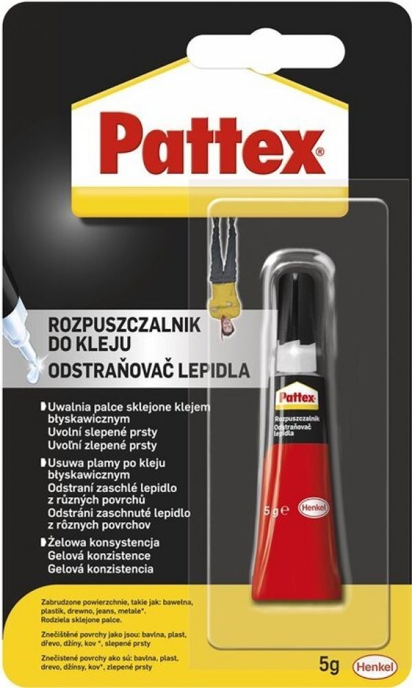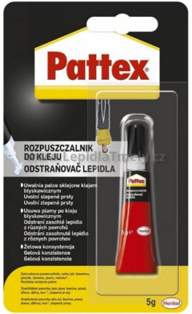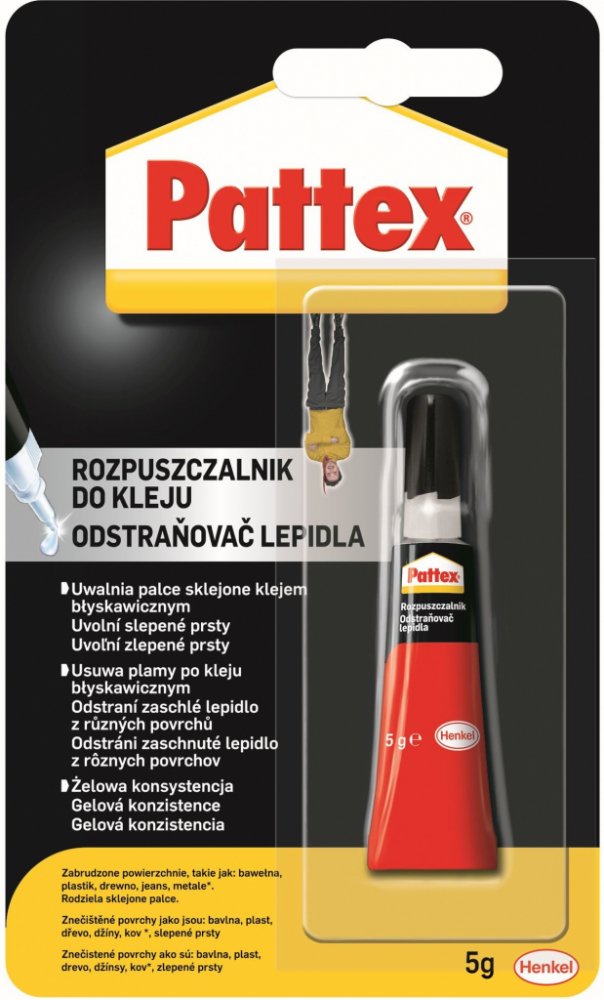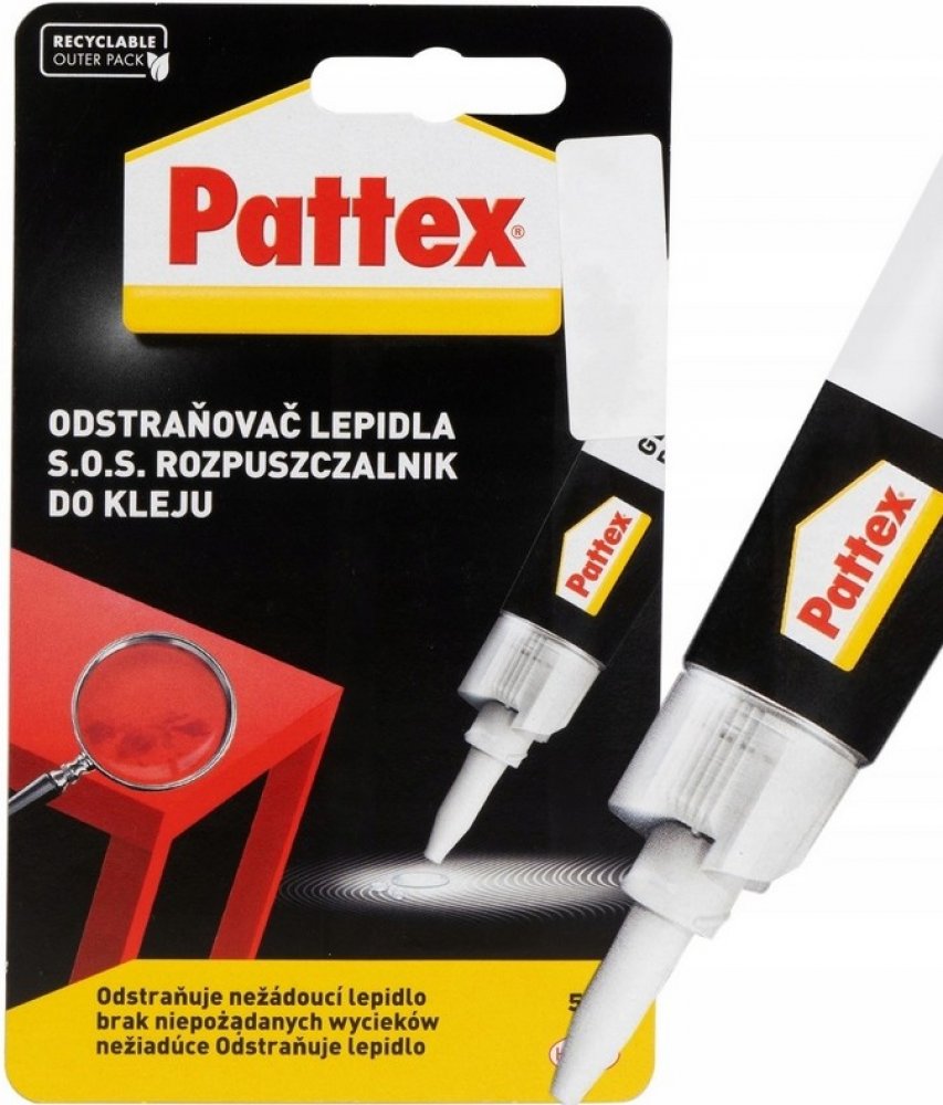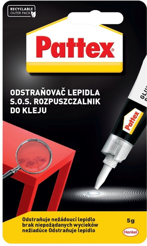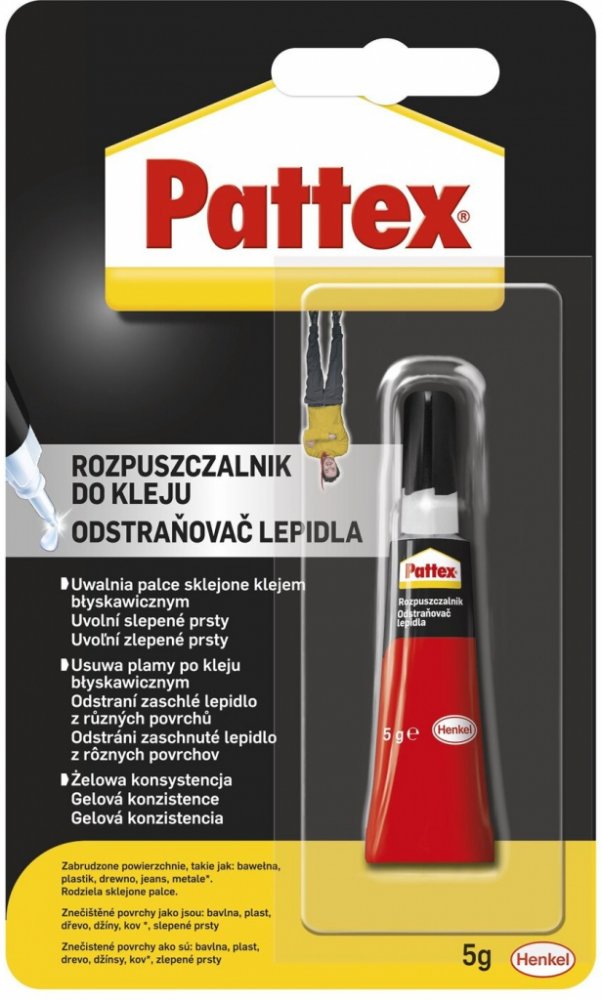 Před použitím: Odstraňovač nejprve vyzkoušejte na skrytém místě povrchu nebo materiálu. Aplikujte dostatečné množství přípravku Pattex odstraňovač tak, aby byla pokryta skvrna nebo zbytek lepidla.