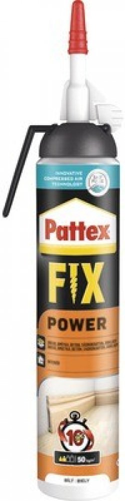 Pattex FIX Power s vlastní spouští se výborně hodí pro jakékoli práce v interiéru, kde je třeba vysoké lepicí síly. Díky vlastní spoušti je jeho aplikace mimořádně snadná. Je vhodný pro savé materiály. Pattex FIX Power má vysokou počáteční přilnavost až 100 kg/m2.