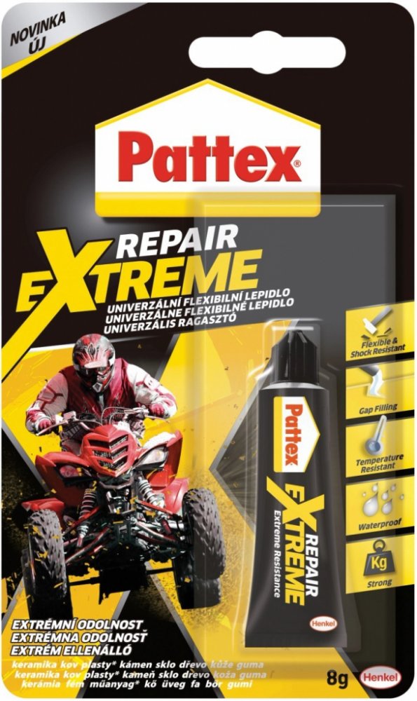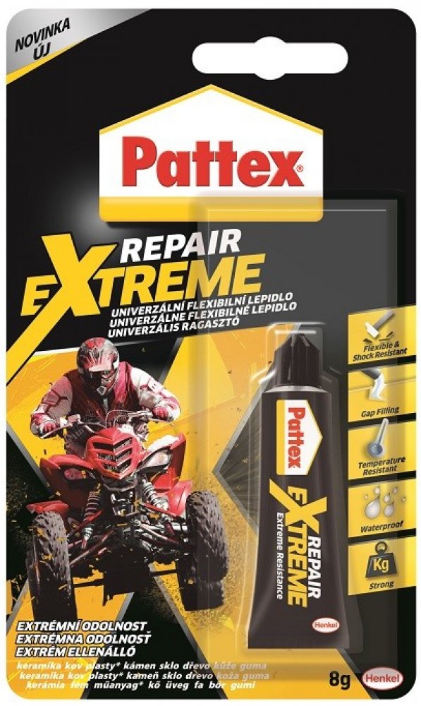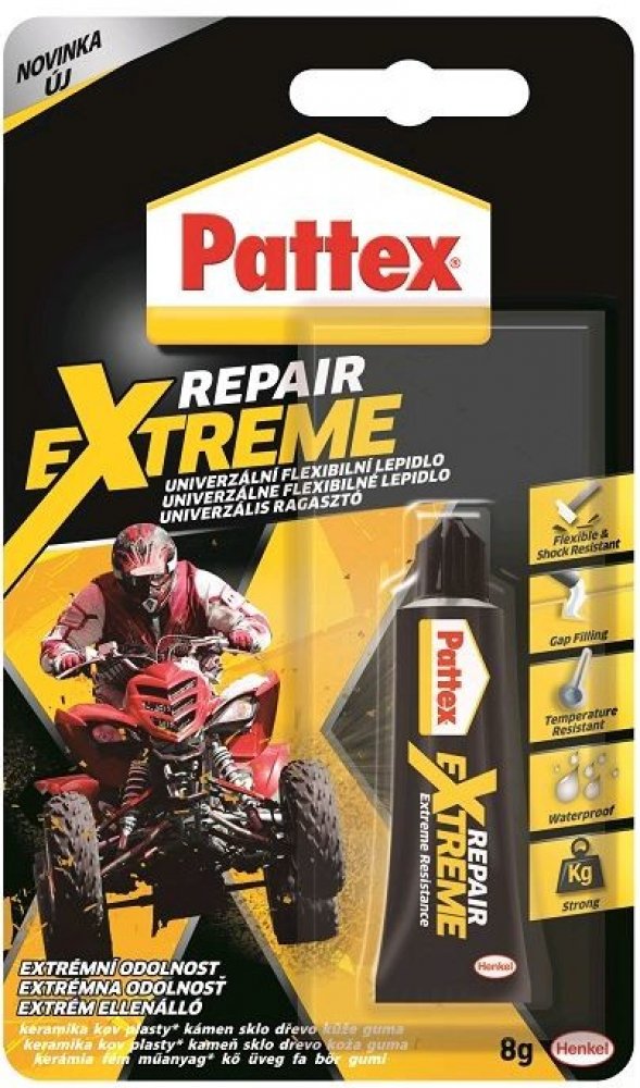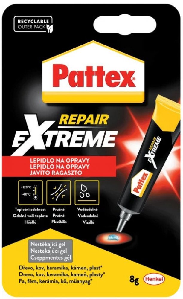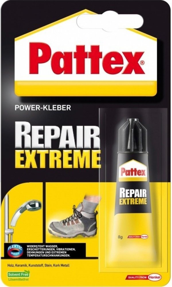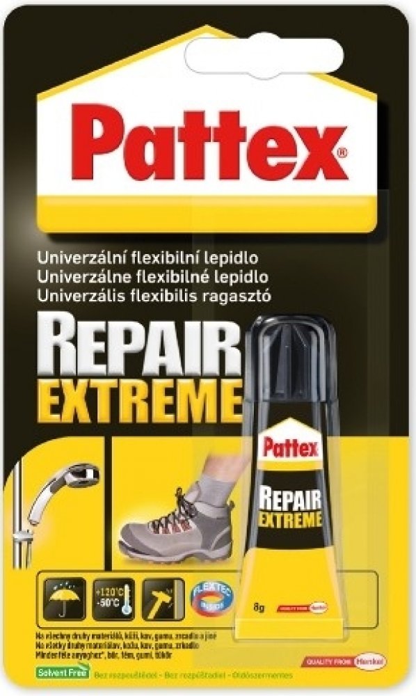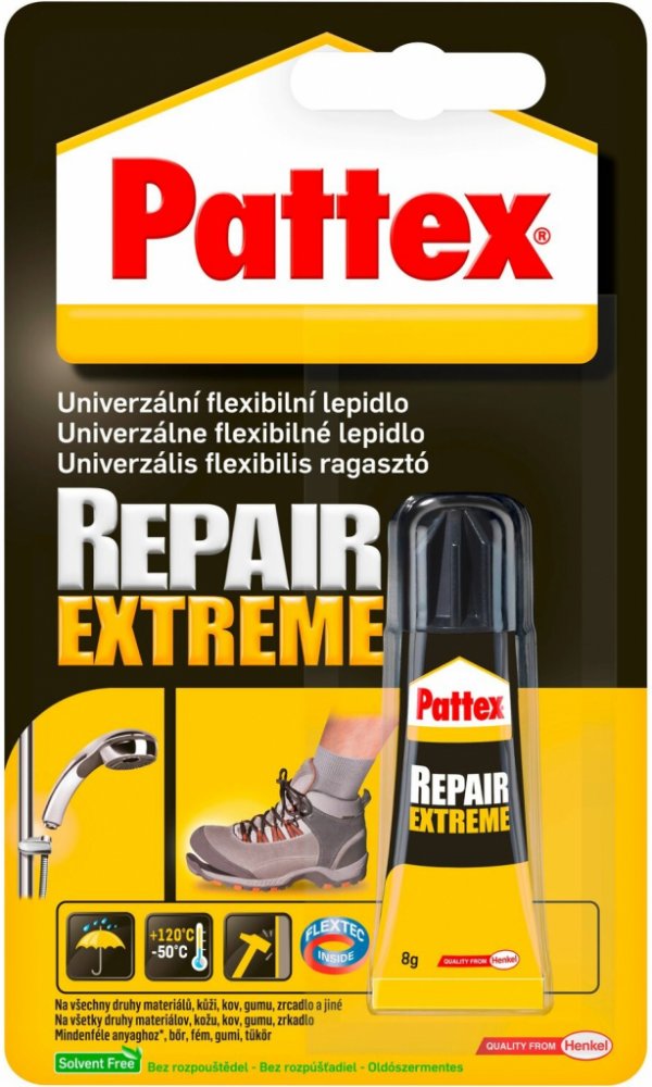 - Pattex Repair Extreme není vhodné pro lepení skel, která jsou vystavena UV záření a trvalému působení vlhkosti.