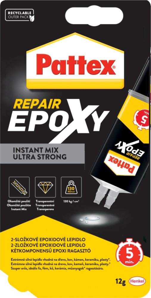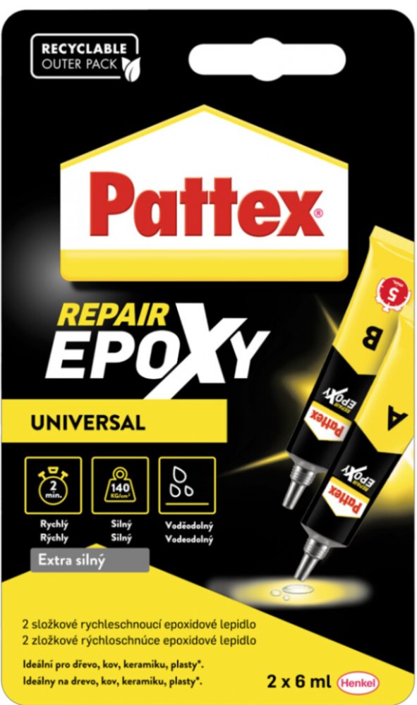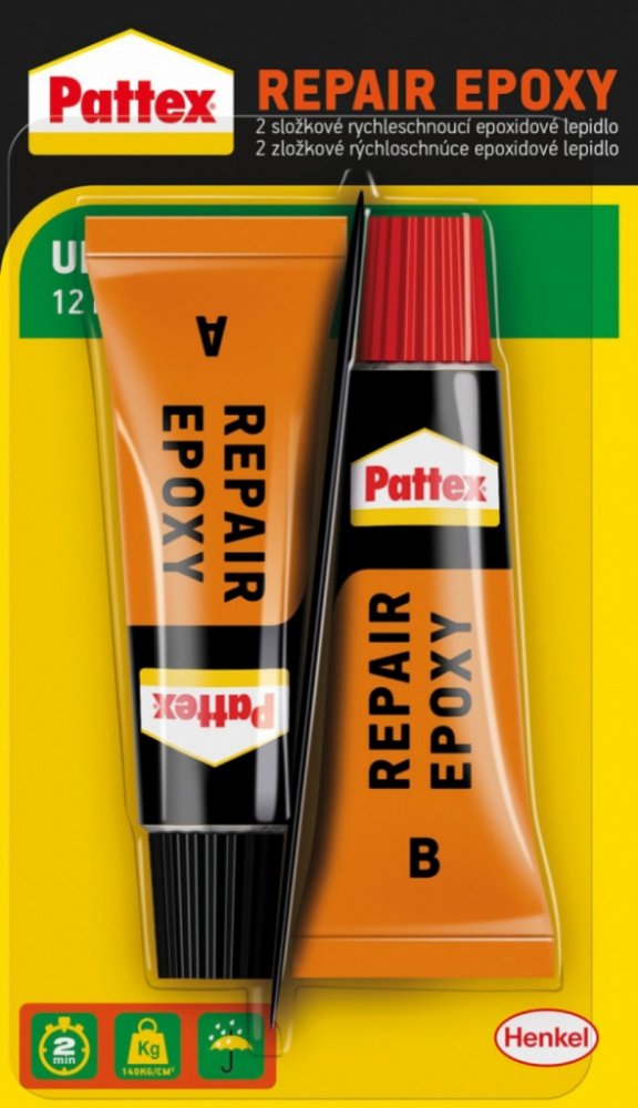 Univerzální dvousložkové epoxidové lepidlo Pattex Repair Epoxy Universal.
