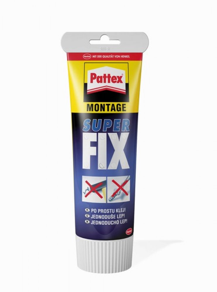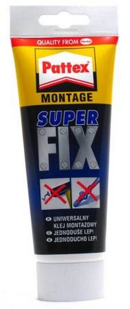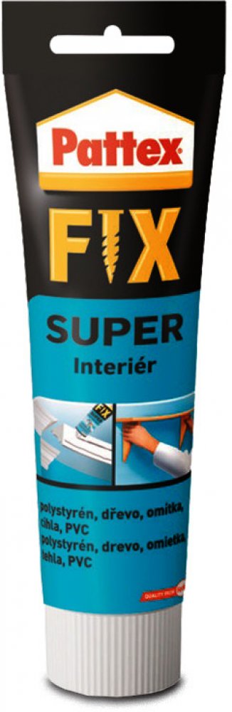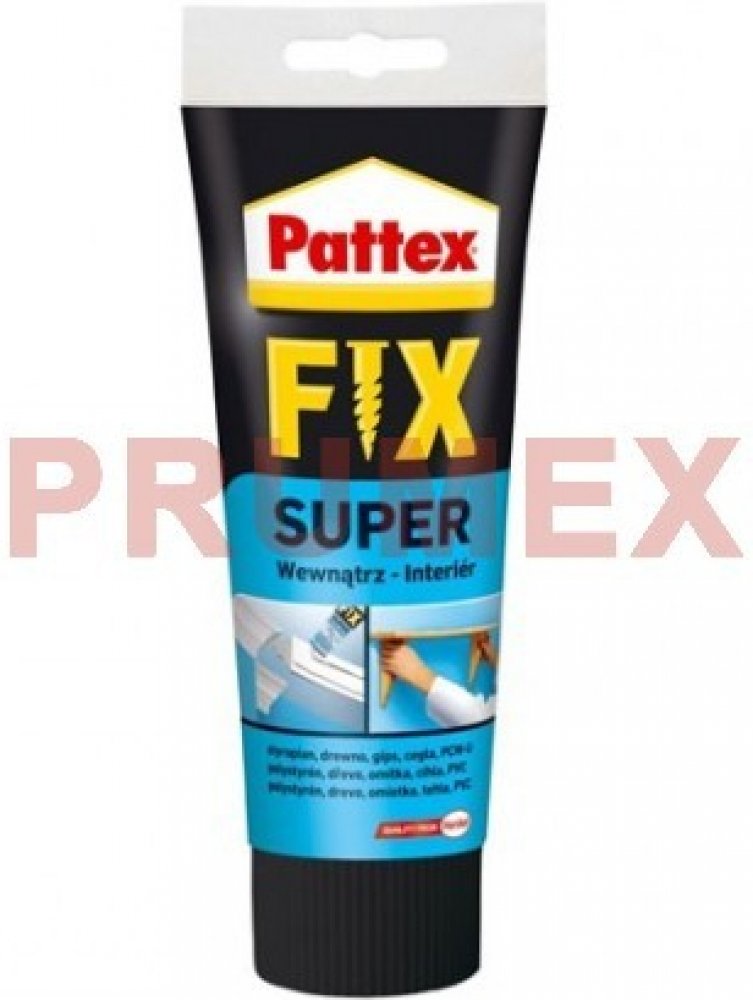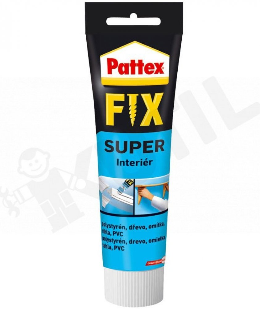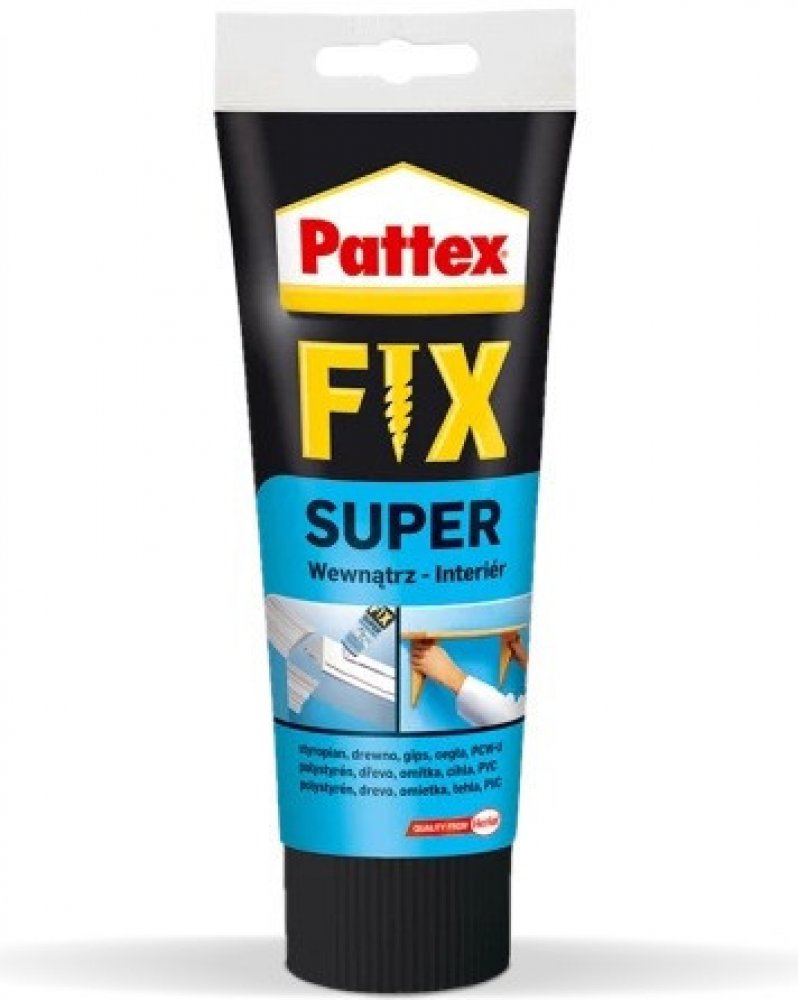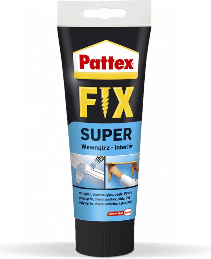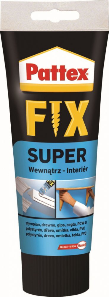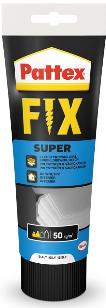 Pattex Fix Super je univerzální disperzní lepidlo nahrazující hřebíky, šrouby a hmoždinky v interiéru.