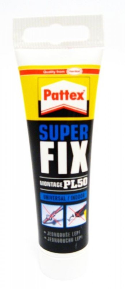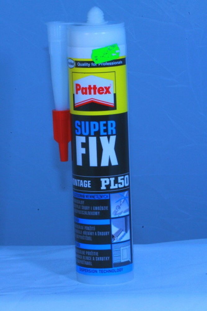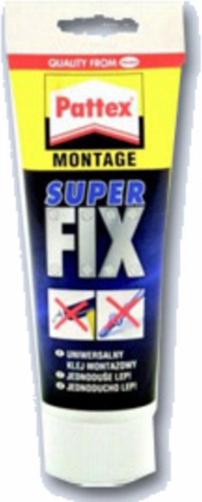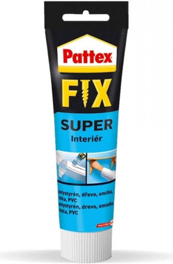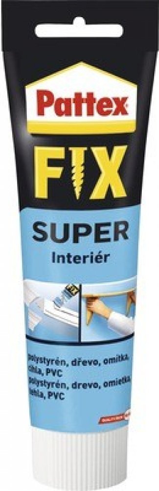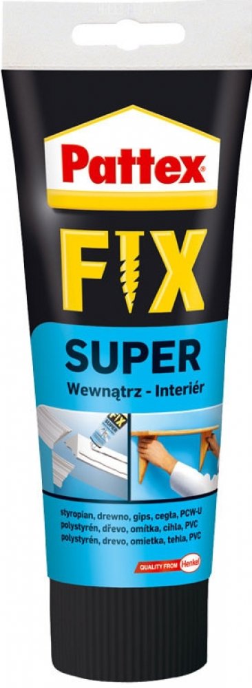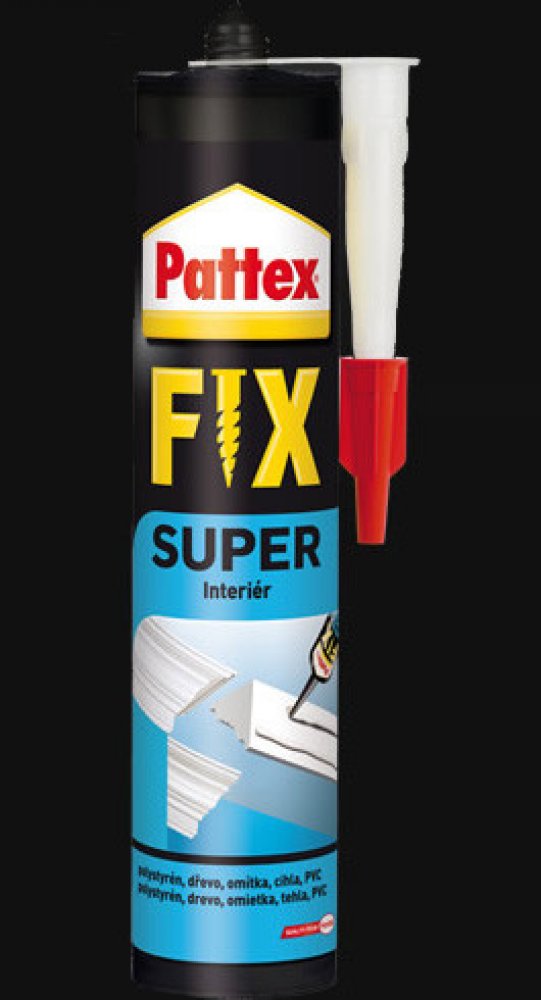 Pattex Fix Super je univerzální disperzní lepidlo nahrazující hřebíky, šrouby a hmoždinky v interiéru.