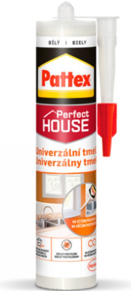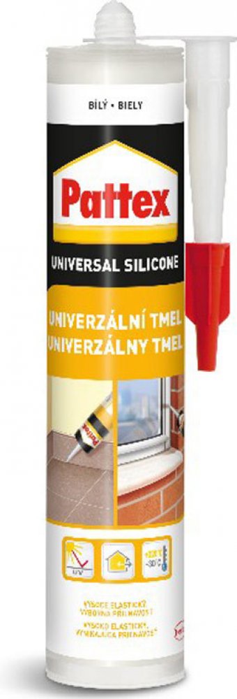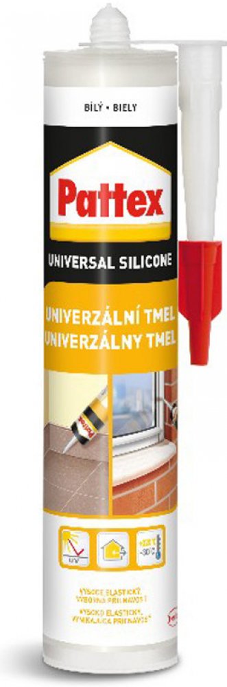 Pattex univerzální tmel je trvale elastický vzduchem vytvrzující acetoxy silikon vhodný pro veškeré konstrukční tmelení jak v interiéru, tak exteriéru. Pro tmelení v sanitární oblasti, skel oken a dveří, skleněných bloků, van, umyvadel a stěn.