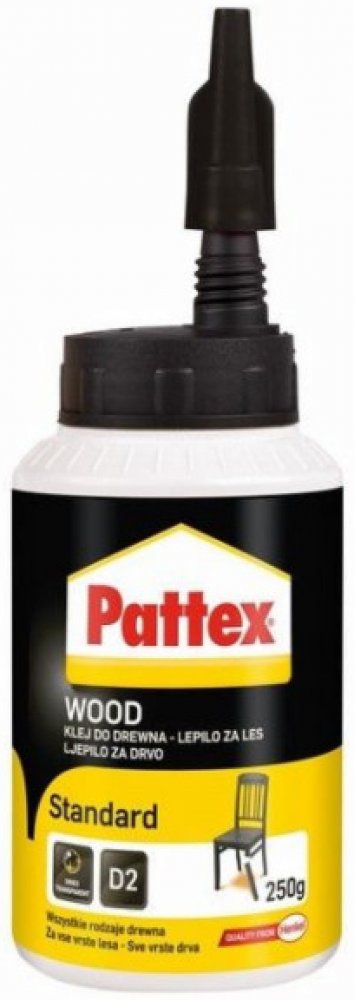 Pattex Wood Standard je disperzní lepidlo na bázi vody vhodné k lepení všech druhů dřeva, včetně tvrdého dřeva, kůže, papíru, lepenky, textilu a polystyrenu. K lepení čepových a kolíkových spojů, pera a drážky.