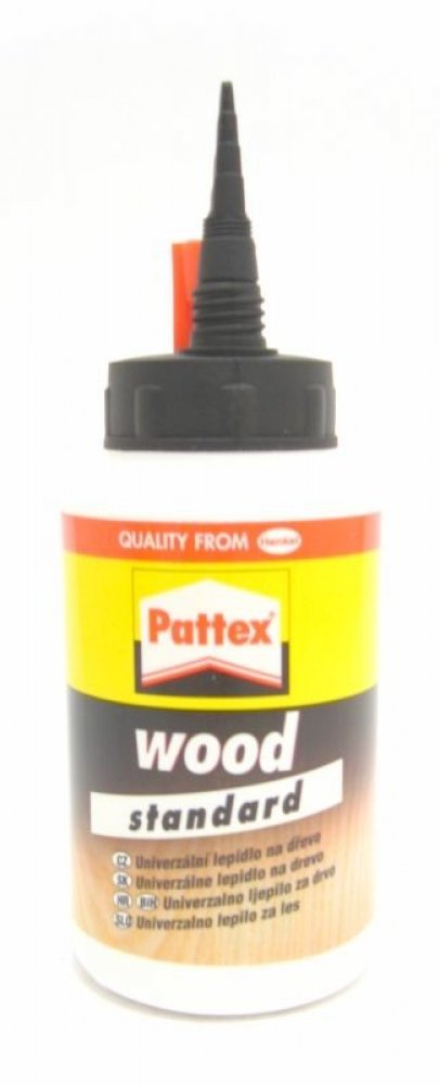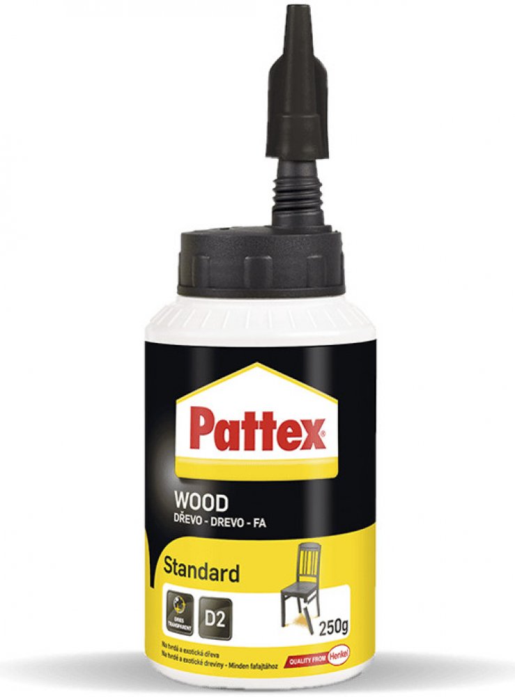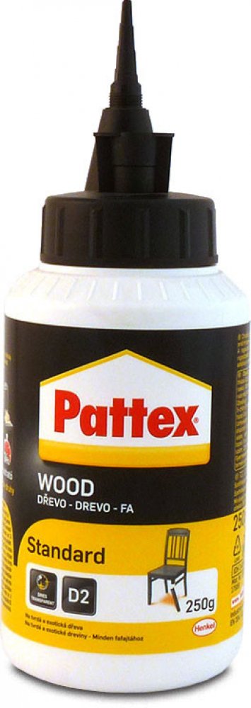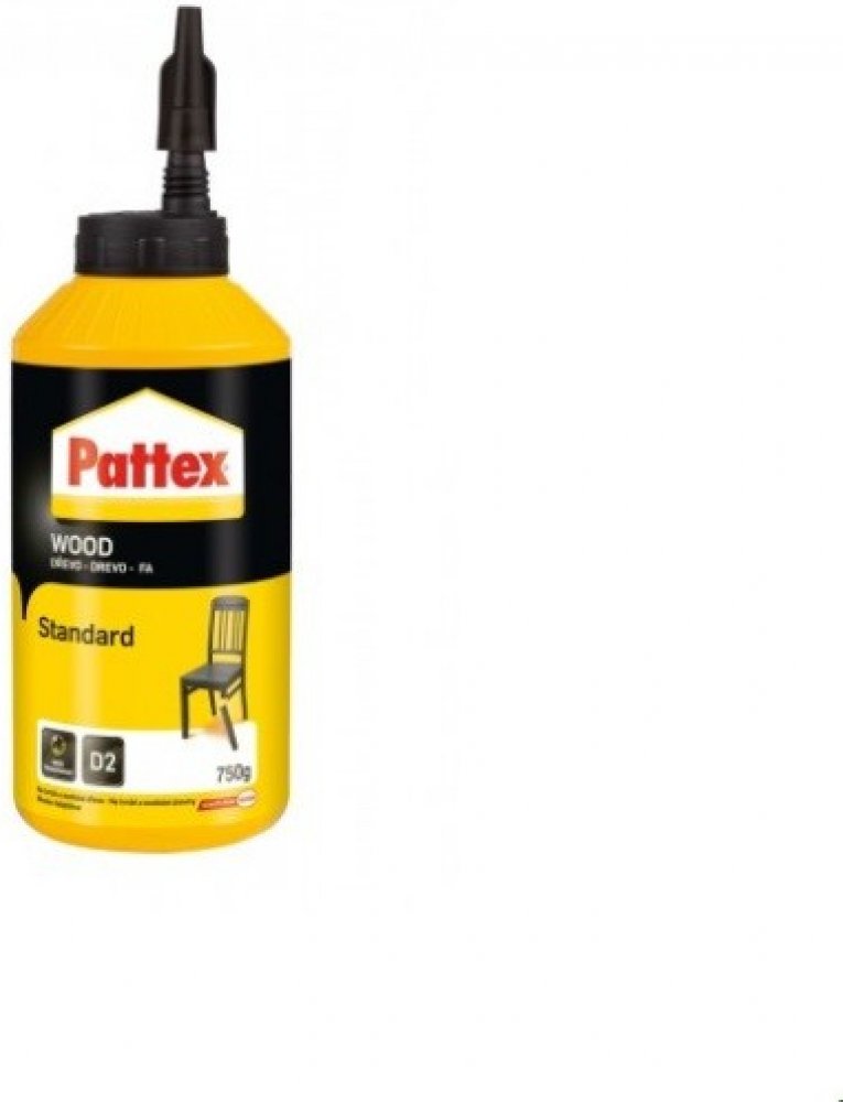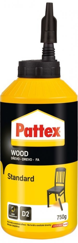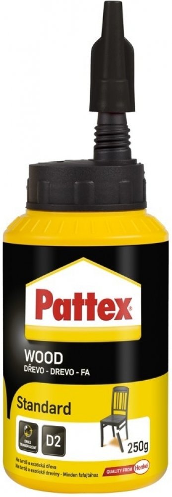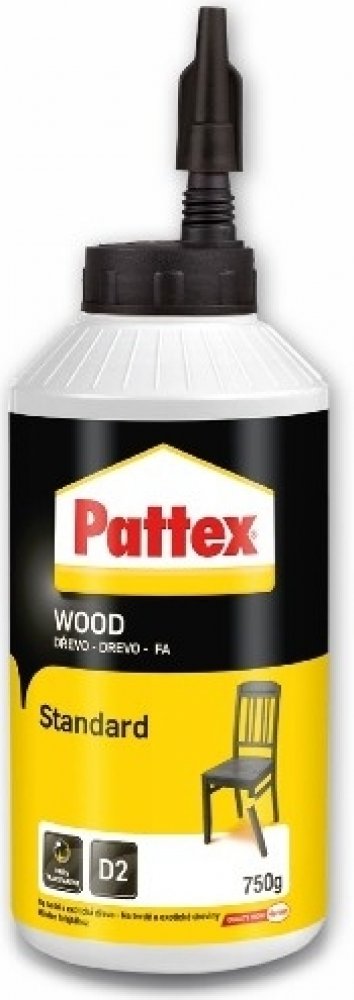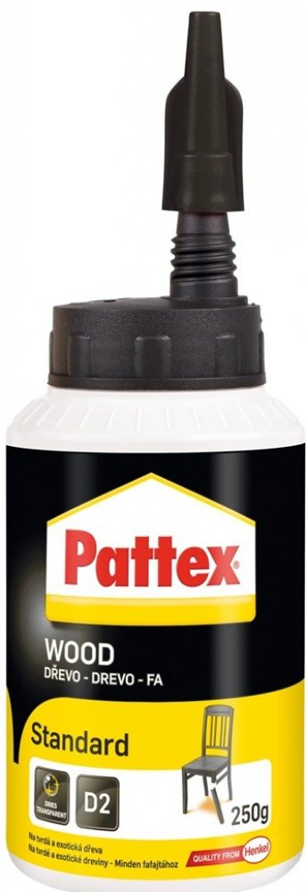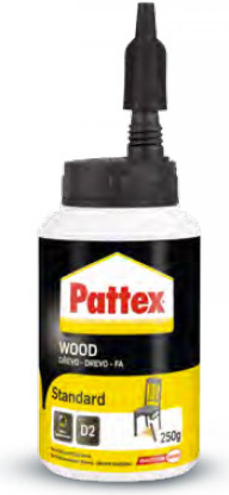 Pattex Wood Standard je vysoce kvalitní univerzální disperzní lepidlo na bázi polyvinylacetátu, které splňuje normu DIN EN 204/D2. Je ideální pro lepení všech druhů dřeva včetně tvrdého dřeva, kůže, papíru, lepenky, textilu a polystyrénu. Toto lepidlo je navrženo pro konstrukční lepení kolíkových a čepových spojů, pera a drážky, lepení spárovek (masivní dřevo), velkoplošných materiálů, desek HPL a lisovaných dřevovláknitých desek.