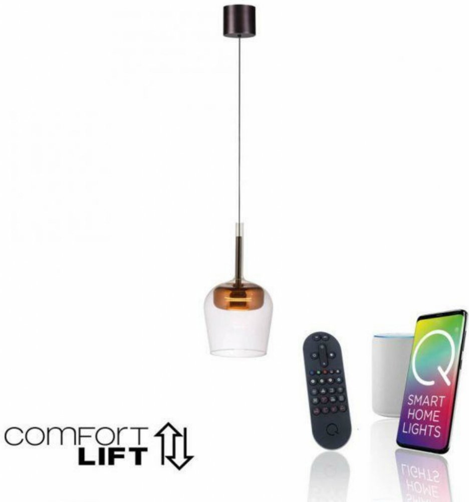 PAUL NEUHAUS LED závěsné svítidlo Q-KON – designový solitér pro chytrou domácnostLED závěsné svítidlo PAUL NEUHAUS Q-KON představuje dokonalou kombinaci špičkového designu, moderních technologií a precizního zpracování. Elegantní měděné provedení v kombinaci s čirým a dekorativním sklem dodává každému prostoru sofistikovanost a nadčasovost. Ideální volba nad jídelní stůl, do moderní kuchyně či stylového obývacího pokoje.Chytrá domácnost na dosah – ovládání světla podle vašich představ Integrace do ZigBee systému – kompatibilní s Amazon Alexa, Google Assistant a dalšími platformami chytré domácnosti. Ovládání přes mobilní aplikaci, hlasem nebo dálkovým ovladačem (součást balení). Plynulé stmívání a možnost nastavení barvy světla od útulné teplé bílé (2700K) po stimulující studenou bílou (5000K). Funkce Memory – svítidlo si pamatuje poslední nastavené hodnoty i po vypnutí. Unikátní systém Comfort Lift – snadná a rychlá úprava výšky závěsu bez nutnosti nářadí.Vytvořte ideální atmosféru pro každý okamžikNastavte si světlo podle nálady nebo denní doby – teplé tóny pro relaxaci, neutrální nebo studené světlo pro práci a koncentraci. Díky chytrým funkcím a možnosti stmívání jednoduše navodíte tu správnou atmosféru v každé situaci. Svítidlo je ideální volbou pro nadčasové interiéry, kde je kladen důraz na detail, kvalitu a uživatelský komfort.Technické parametry Světelný tok: 1054 lm (efektivní 300 lm) Příkon: 11 W (LED modul 9 W) Barva světla: 2700–5000 K (plynule nastavitelná bílá – CCT) Stmívatelnost: Ano (ZigBee, aplikace, ovladač) Rozměry: průměr 210 mm, výška max. 2000 mm Materiál: kvalitní sklo, kovová měděná úprava Hmotnost: 1,8 kg Ochrana: IP20 (vhodné do interiéru) Napájení: 220-240V Včetně LED zdrojeZáruky a certifikace Životnost: 30 000 hodin Záruka: 5 let Certifikace: CEProč vybrat právě tento model? Prémiové designové zpracování vhodné do reprezentativních i privátních interiérů. Maximální uživatelský komfort díky možnosti rychlého nastavení výšky a pokročilého ovládání. Ideální pro klienty, kteří hledají spojení estetiky, technologií a dlouhodobé spolehlivosti.Často kladené dotazy (FAQ) Lze upravit délku závěsu? Ano, snadno díky systému Comfort Lift bez nutnosti zásahu elektrikáře. Je svítidlo vhodné do chytré domácnosti? Ano, plná kompatibilita se ZigBee a možnost ovládání aplikací, hlasem i ovladačem.Objevte novou úroveň světelného komfortu a designu s PAUL NEUHAUS Q-KON – investujte do světla, které inspiruje i slouží.
