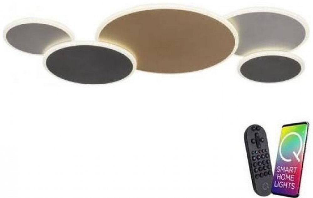 Designové LED stropní a nástěnné svítidlo PAUL NEUHAUS Q-PIATO Smart Home (5 kruhů, ZigBee, 2700–5000K)Zažijte spojení technologie a umění s unikátním svítidlem PAUL NEUHAUS Q-PIATO, které promění každý interiér v inspirativní prostor. Pětice elegantně propojených kruhů v kombinaci šedé, černé a mosazné povrchové úpravy vytváří nezaměnitelný vizuální prvek v moderním i reprezentativním prostředí. ...