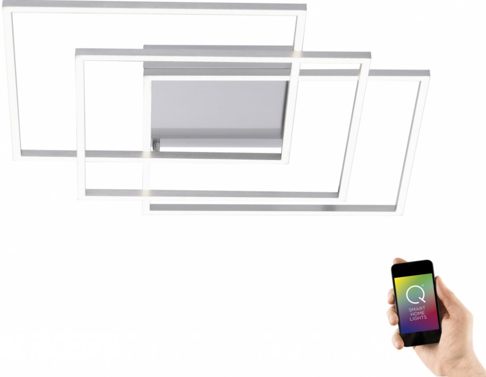 Výška: 80 mm, Dálkové ovládání: ano, Úhel svícení: 120°, Stmívatelné: ZigBee, Životnost: 25000h, Hmotnost: 1900g, Šířka: 600mm, Délka: 600mm, Ochrana IP: IP20, Světelný tok: 2700lm, Barva světla: 2700-5000K, Příkon: 17W, Celkový příkon: 55W, Patice: LED, Vč. světelného zdroje: ano, Barva: ocel, Kolekce: Q-INIGO, Počet světelných zdrojů: 3
