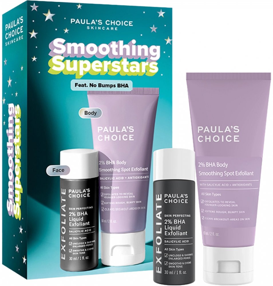 Paula's Choice Smoothing Superstars vyhlazující kosmetika na obličej a tělo peeling 30 ml + exfoliační mléko 60 ml kosmetická sada