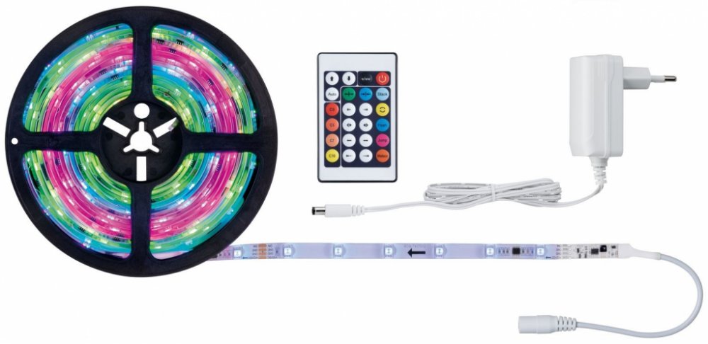 SimpLED Motion sada 5m 10W RGB potažená. Barvy v pohybu! 5 metrů dlouhá sada SimpLED Motion vytváří pozoruhodné světelné efekty. Blikající světlo přistávací dráhy, ocas meteoritu a další úžasné scenérie zde lze vytvořit stisknutím tlačítka na dodaném dálkovém ovládání. Kromě plného ovládání všech LED svítidel, jako například klasických RGB pásek, zde lze ovládat digitálním způsobem každé LED svítidlo zvlášť. Takto lze na pásce např. současně vytvářet barevné přechody od červené přes oranžovou. - kompletní sada, vč. pásky, napájecího zdroje a dálkového ovládání - nelze kombinovat s pásky YourLED a MaxLED - nelze rozšířit - střídání RGB barev