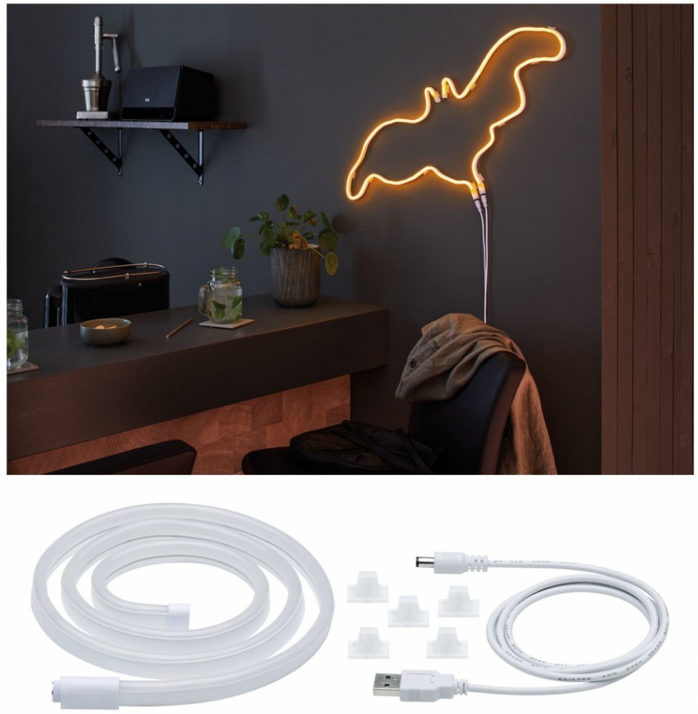 LED pásek Neon Colorflex USB - flexibilní LED pásek s USB pripojením Neonový proužek, který díky 120 LED diodám barevne zárí, lze ohýbat nebo skládat, a lze jej tak získat do nejruznejších tvaru. Tvar vytvorený pruhem je nastaven na scénu s homogenním efektem neonového svetla bez viditelných svetelných bodu. Pás lze pripojit k powerbance, PC nebo notebooku pomocí USB zástrcky nebo do zásuvky pomocí zásuvkového adaptéru (není soucástí dodávky). Pás lze pripevnit na zed pomocí dodávaných, pruhledných prídržných spon.