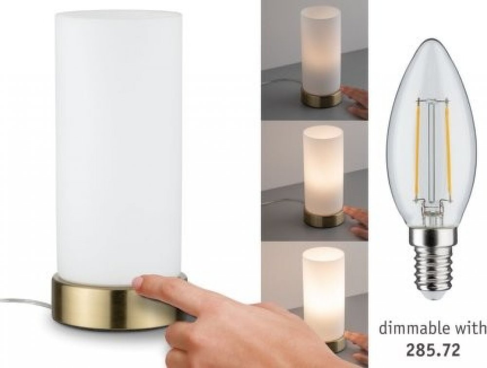 Stolní lampa Pinja s mosazným podstavcem Stolní lampa Pinja nabízí jasné akcenty v obývacím pokoji nebo odpovídající okolní osvětlení nočního stolku. Stínidlo z opálového skla zajišťuje vyzařování světla bez oslnění. Tento krásný dávkovač světla lze snadno zapnout a vypnout pomocí dotykového spínače integrovaného v základně. - včetně napájecího vedení se zástrčkou