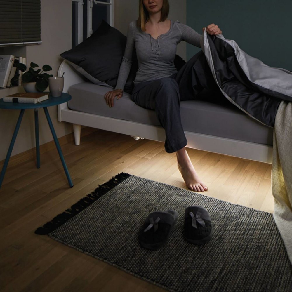 Sada MaxLED 250 Night Comfort pro jednolůžko přináší do ložnice bezpečí a automaticky se zapne, když v noci vstanete. Pruh a snímač se snadno zasunou pod bok postele. Soumrakový senzor zapne světlo až po setmění, takže se zabrání nechtěnému zapnutí během dne. Délku svícení lze nastavit ručně v rozmezí 30 sekund až 6 minut. - jednoduchý zásuvný systém pro snadnou instalaci - Rozsah detekce čidla 10...