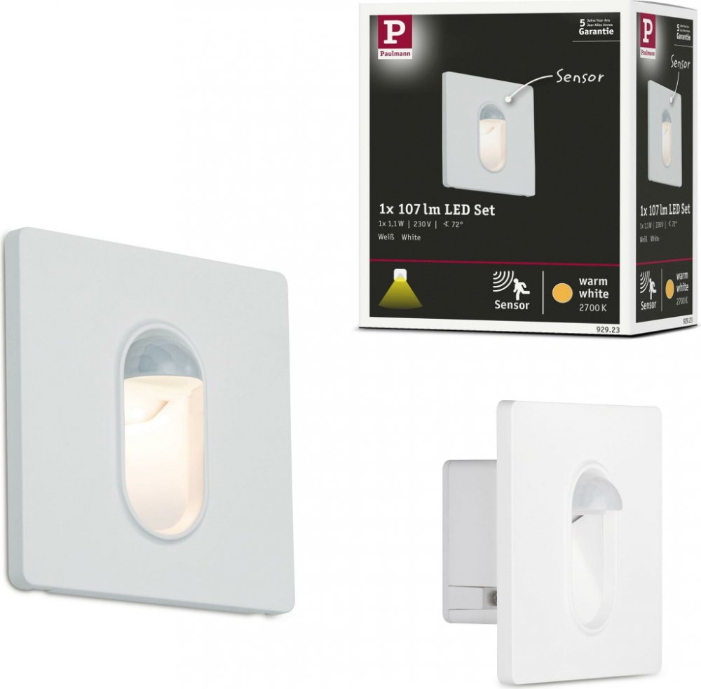 Paulmann bílá plast pro velmi malé místnosti bodová nástěnná zapuštěná 2700 K 2 W IP20 F pouze do suchých vnitřních prostor 230 V 65 lm 7.8 cm 7.8 cm 3.5 cm