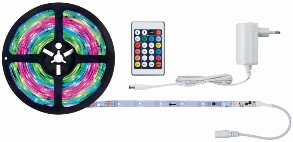PAULMANN SimpLED Motion Sada 5m 10W RGB s Krytím 705.13 P 70513Barvy v pohybu! Představujeme vám 5metrovou sadu SimpLED Motion, která přináší spektakulární světelné efekty. Díky funkcím jako je světlo dráhy přistání a meteorický ocásek můžete vytvářet úžasné scénáře pouhým stisknutím tlačítka na přiloženém dálkovém ovladači.Tato sada umožňuje kompletní ovládání všech LED diod podobně jako klasické RGB pásky, avšak s možností digitálního ovládání každé LED diody zvlášť. Můžete tak například vytvořit plynulý přechod barev od červené přes oranžovou až po žlutou zároveň na jednom pásku. Připraveno k použití včetně napájecího zdroje 230/12V s přívodním kabelem a síťovou zástrčkou Kompletní sada obsahuje pásek, napájecí zdroj a dálkový ovladač RGB LED pro změnu barev a efektové osvětlení Nekompatibilní s pásky YourLED a MaxLED Nelze rozšířit