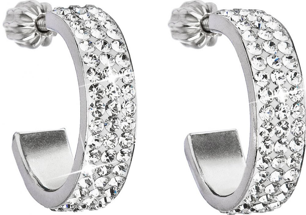 Bohatě zdobené náušnice se Swarovski krystaly se hodí pro každou situaci. Můžete je zvolit k outfitu do práce, na párty i na sváteční večeři. Náušnice 31119.1 ve tvaru půlkruhu jsou vyrobeny ze stříbra o ryzosti 925/1000 s povrchovou úpravou rhodiem a jsou zdobeny mnoha Swarovski krystaly v bílé barvě. Díky Swarovski krystalům se náušnice nádherně třpytí. Náušnice zapnete na šroubek, který je spol...