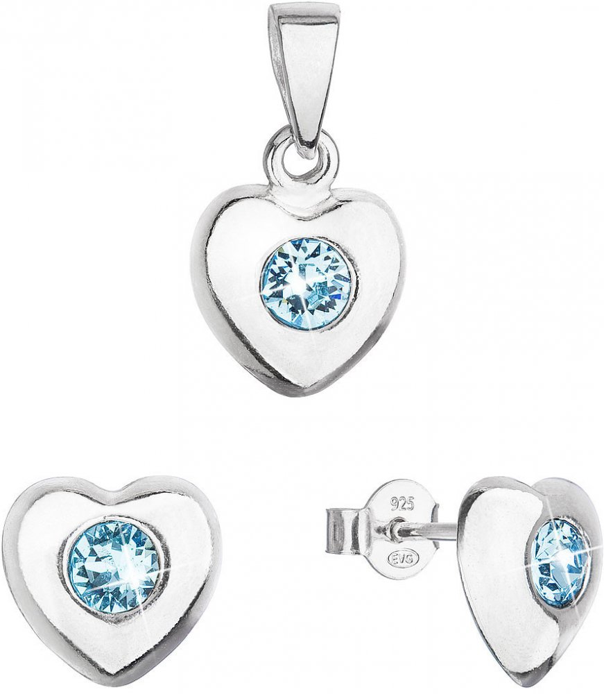 Sada 39176.3 obsahuje náušnice a přívěsek. Šperky jsou vyrobeny ze stříbra ryzosti 925/1000, které prošlo povrchovou úpravou rhodiem. Rhodium chrání šperk proti zčernání, zežloutnutí i poškrábání. Přívěsek i náušnice jsou zdobeny modrými Swarovski krystaly. Náušnice se zapínají na puzetku. Jelikož šperky neobsahuji žádný přídavek niklu, mohou je bez obav nosit i alergici.