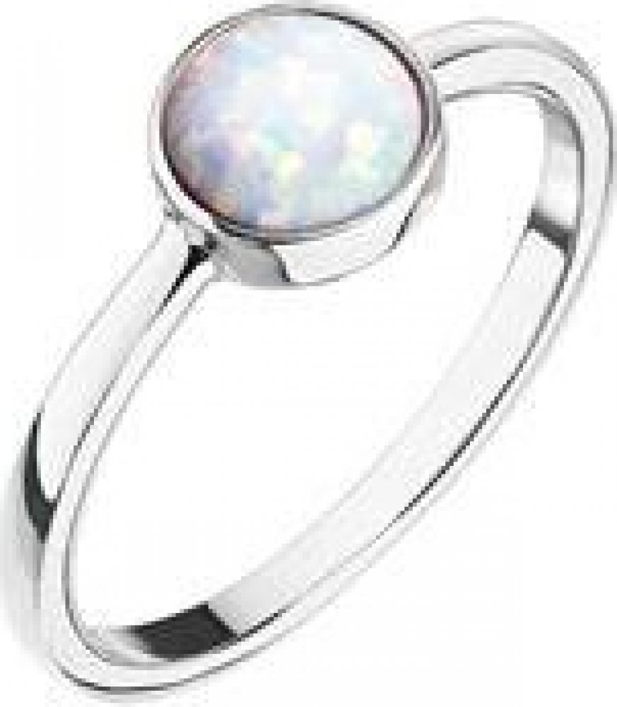 Stříbrný prsten zdobený syntetickým opálem bílé barvy