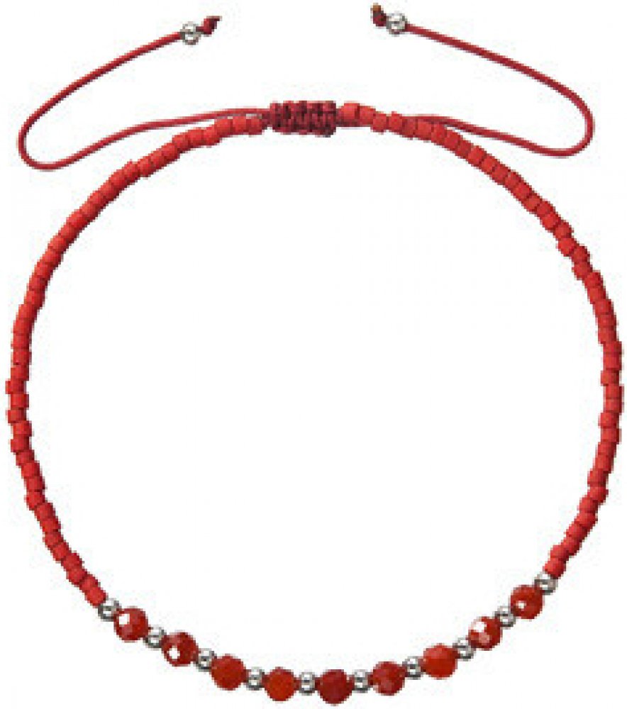 Je dozdoben korálky ze stříbra 925/1000. Délka náramku se reguluje posouváním šnůrky v uzlu a je maximálně 25 cm.