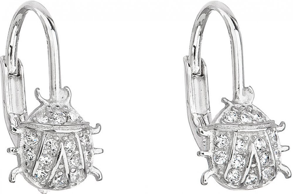Stříbrné náušnice visací se zirkonem bílá beruška 11196.1