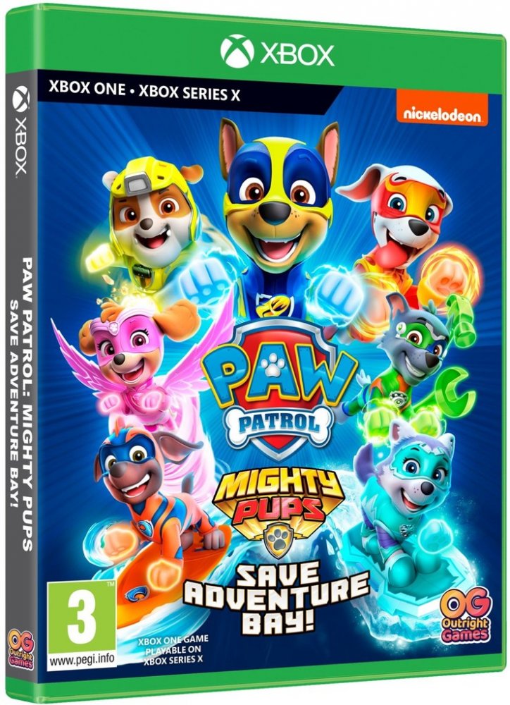 Paw Patrol: Mighty Pups Save Adventure Bay vychází z populárního seriálu Paw Patrol, který je u nás vysílán jako Tlapková patrola. Všichni psi z této patroly mají k dispozici domky, které v případě potřeby mohou nechat přestavět na vozidlo. Každý z nich v patrole zastává jinou roli. Ať už jako záchranář, hasič, policista nebo jako pilot. Hra Paw Patrol: Mighty Pups Save Adventure Bay vypráví příběh ve kterém na městečko Adventure Bay dopadne meteor a tito psí ochránci se tak stanou superhrdiny. Se svými novými schopnostmi se pokusí vše napravit. Hra nabídne i lokální kooperaci s dalším hráčem na jedné konzoli.