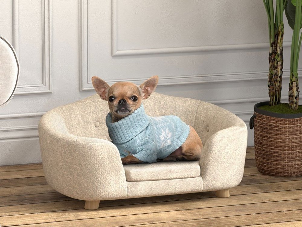 Pohovka pro psy PAWHUT D04-196CW, krémově bílá, 70x47x30 cm
