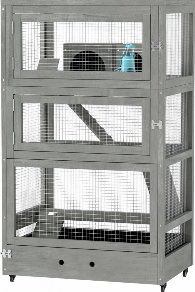 PawHut Dřevěná klec pro drobné hlodavce šedá 65 x 45 x 109 cm