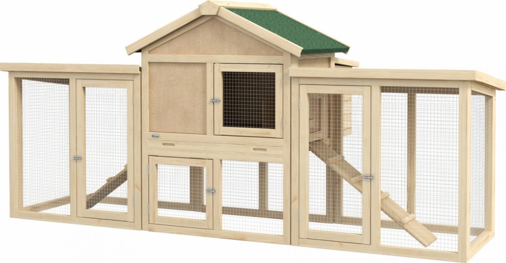 Pawhut PawHut dřevěné pro slepice hnědé jednopatrové vyvýšené sedlová se zvýšeným zabezpečením 204.0 cm 85.0 cm 93.0 cm 25.0 kg 2 pro malý chov (1–4 ks)