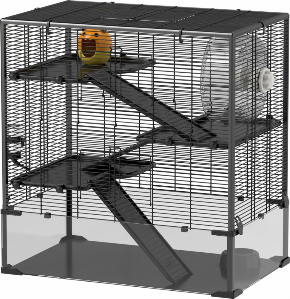 Objevte moderní klec pro trpasličí křečky, která spojuje zábavu a praktičnost! Díky podlaze z tvrzeného skla a výšce 23 cm můžete vytvořit útulný životní prostor s papírem nebo dřevěnými hoblinami. Prostorná klec pro hlodavce se čtyřmi úrovněmi obsahuje plošiny, rampy a boudu, které vašemu chlupatému kamarádovi zaručí odpočinek a zábavu. Tato klec je ideální pro trpasličí křečky a představuje bezpečné a rozmanité útočiště!