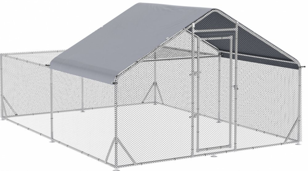Předělejte svou zahradu pomocí výběhu pro kuřata, prostorného chléva o velikosti 12 m² pro 12–18 kuřat. Je vybaven galvanizovanou ocelí a tkaninou Oxford odolnou proti UV záření a zaručuje bezpečné a pohodlné místo pro vaše opeřené přátele. Inovativní dvířka výběhu pro volný výběh s vestavěným přístupem ke krmivu usnadňují péči o kuřata a design nabízí dostatek prostoru pro hraní, pobíhání a odpočinek.Popis:✔ Prostorná plocha kurníku 12 m² pohodlně pojme 12-18 kuřat✔ Pozinkovaná ocel a poplastované pletivo kurníku zajišťují odolnost✔ 420D Oxford tkanina chrání před UV zářením a deštěm✔ Konstrukce krmných dvířek zabraňuje úniku kuřat✔ Obsahuje závěsné krmítko a 4-úrovňové bidlo pro pohodlí✔ Montáž vyžaduje minimálně 2 osoby, doba montáže cca 2 hodiny✔ Doporučené přidání kuřecího domu pro větší teplo a ochranu✔ Vhodné i pro králíky, kachny nebo husyTechnické údaje:✔ Barva: Stříbrná✔ Materiál: Pozinkovaná ocelová trubka, ocelová síťovina, 420D Oxford tkanina✔ Celkové rozměry: 300W x 400D x 195V cm✔ Horní kryt: 348L x 200W cm✔ Velké dveře: 55W x 160V cm✔ Přikládací dvířka: 44W x 42V cm✔ Mřížka: 4L x 2,5W cm✔ Hřad: 140L x 95W cm, 25 cm (vzdálenost)Rozsah dodávky:✔ 1 x kuřecí výběh✔ 1 x Závěsné krmítko✔ 1 x okoun✔ 1 x manuálProstorný obývací prostor: Tento prostorný kurník nabízí 12 m² prostoru pro 12-18 kuřat, dostatek prostoru pro běhání a různé aktivity.Optimální ochrana: Vybaveno 420D postříbřenou Oxford tkaninou, voděodolnou a UV-odolnou. Šikmá střecha kuřecí klece odvádí vodu a chrání vaše opeřené kamarády za všech povětrnostních podmínekRobustní materiály: Jemné šestihranné pletivo, vyrobené z pozinkované oceli o tloušťce 2,5 cm a ocelového drátěného pletiva potaženého plastem, nabízí optimální venkovní ochranu a bezpečné prostředí pro vaše kuřataInovativní design: Speciální krmná dvířka brání zvířatům v útěku. Venkovní kurník je vybaven závěsným podavačem a víceúrovňovými bidly uvnitř, což poskytuje prostorný a pohodlný prostor pro odpočinek a hraníRozměry výběhu kuřete: 300W x 400D x 195V cm. Montáž vyžaduje dva lidi a trvá asi 2 hodiny