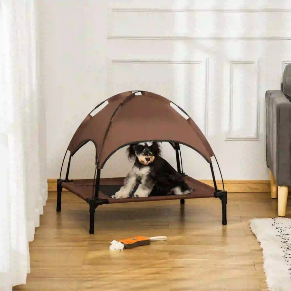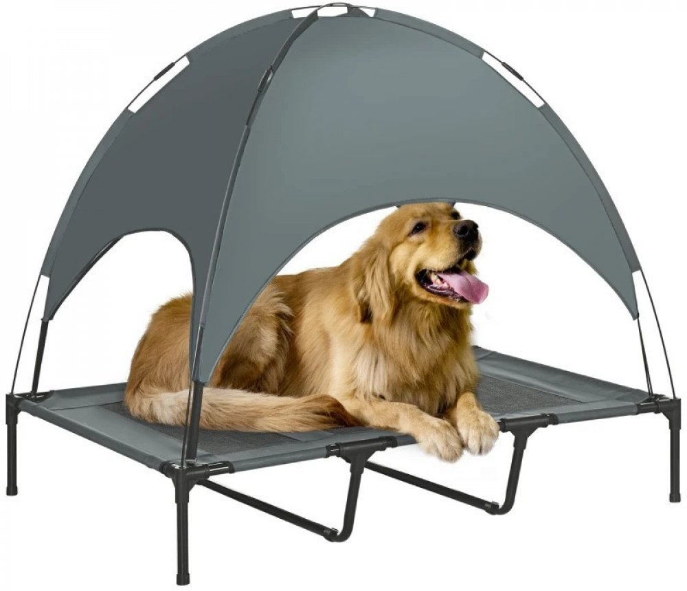 Dopřejte svému mazlíčkovi ten nejlepší odpočinek s naším stylovým pelíškem. Vyvýšený pelíšek pro psy podpírají čtyři kovové trubky s práškovým nástřikem, kolem kterých je omotána prodyšná síťovina. Stříška poskytuje Vašemu mazlíčkovi příjemný stín i v létě a lze ji snadno nastavit do správné polohy. Stabilní konstrukce zabraňuje viklání a naklánění, takže Váš mazlíček může spát bez obav.