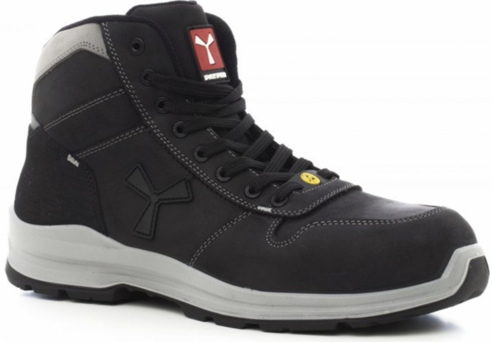 Kotníková bezpečnostní obuv PayPer GET FORCE MID S3 SRC je navržena pro extrémní podmínky. Hliníková tužinka ve špičce chrání proti nárazům, certifikovaná stélka z textilní fólie brání propíchnutí a protitorzní výztuž shank stabilizuje chodidlo. Výztuž ve tvaru koňské podkovy dodává extra ochranu v nejvíce namáhaných místech. Norma EN ISO 20345:2011 S3 SRC potvrzuje nejvyšší bezpečnostní standardy. Svršek z voděodolné a prodyšné hovězí lícovky v nubukovém provedení zajišťuje dlouhou životnost, zatímco vnitřní podšívka odolná proti oděru udržuje nohy v suchu. Vyjímatelná ortopedická vložka Ortholite X40 016 spolu s mezipodešví z ultralehkého polyuretanu a tlumičem MASTER BALANCE poskytují lehkost a pohodlí. Protiskluzová podrážka XTRAIL GRIP z TPU s chráničem podpatku a špičky zajišťuje stabilitu i na nerovném terénu. Hmotnost 625 g a velikostní rozsah 39–48 včetně polovičních velikostí zaručují přesné padnutí a komfort po celý den.